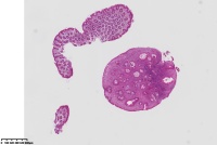 肠粘膜息肉,腺体扩张,间质有炎细胞浸润。