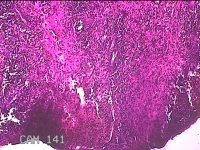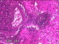 灰白暗红色结节1.8x0.5x0.3cm一个,表面糜烂,切面灰白暗红色,质软。