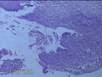 灰白粉红色不规则碎组织0.8x0.5x0.3cm一堆。