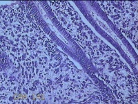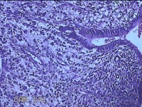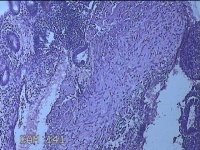 灰白暗红色不规则碎组织2.5x1.8x0.8cm一堆。