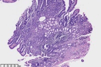 慢性浅表性胃炎,局部息肉样增生(未见十二指肠腺,活检部位请结合胃镜检查)。