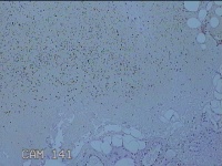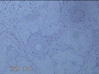 灰白暗红色带皮肤样结节1.8x0.8x0.7cm一个,表面糜烂,切开结节呈实性,切面灰白粉红色,质软。