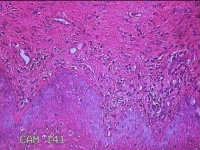 灰白粉红色组织0.3x0.2x0.1cm一块,表面光滑。
