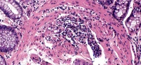 直肠距肛门20厘米处见一直径约0.4厘米的片状不规则隆起,表面光滑,取材质韧。 间质内那一团细胞和一个变形腺体,有问题吗?