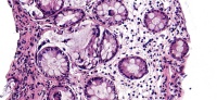 直肠距肛门20厘米处见一直径约0.4厘米的片状不规则隆起,表面光滑,取材质韧。 间质内那一团细胞和一个变形腺体,有问题吗?