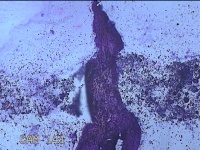 灰白暗红色肿物0.2x0.1x0.1cm一个,表面糜烂。
