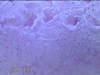 灰白暗红色结节0.8x0.7x0.2cm一个,表面糜烂。