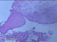 1.“宫颈6点组织”:灰白粉红色组织0.5x0.3x0.2cm一块。 2.“宫颈7点组织”:灰白暗红色组织0.8x0.3x0.2cm两块。