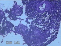 灰白暗红色不规则碎组织1x0.8x0.3cm一堆。