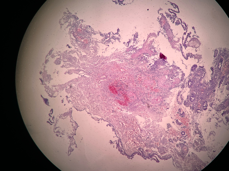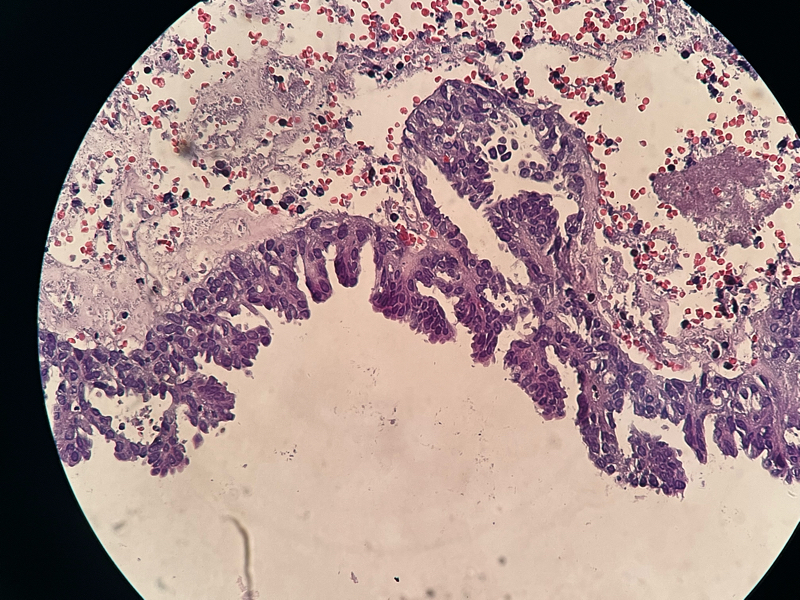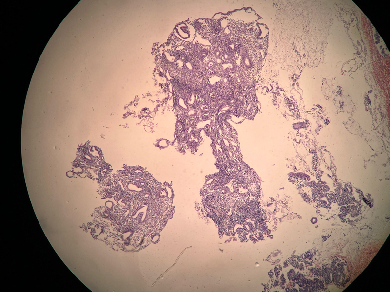 组织形态符合子宫内膜息肉,表面有乳头的那些区域要鉴别乳头样化生和表面浆液性肿瘤,免疫组化可能会有帮助。