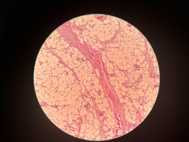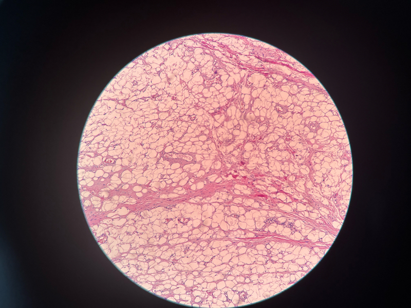 毛细血管有点多,倾向血管脂肪瘤,再看看其他的区域。