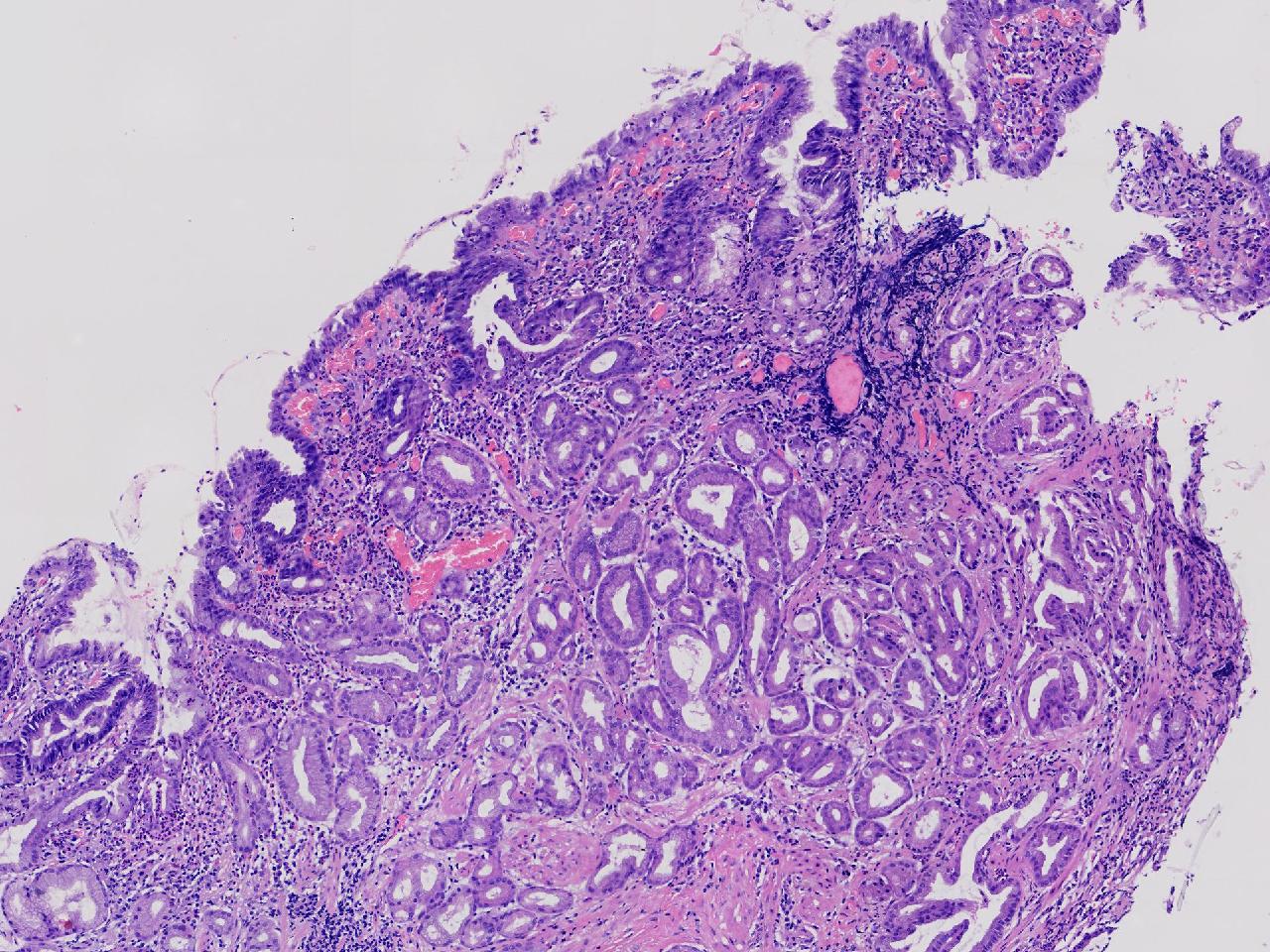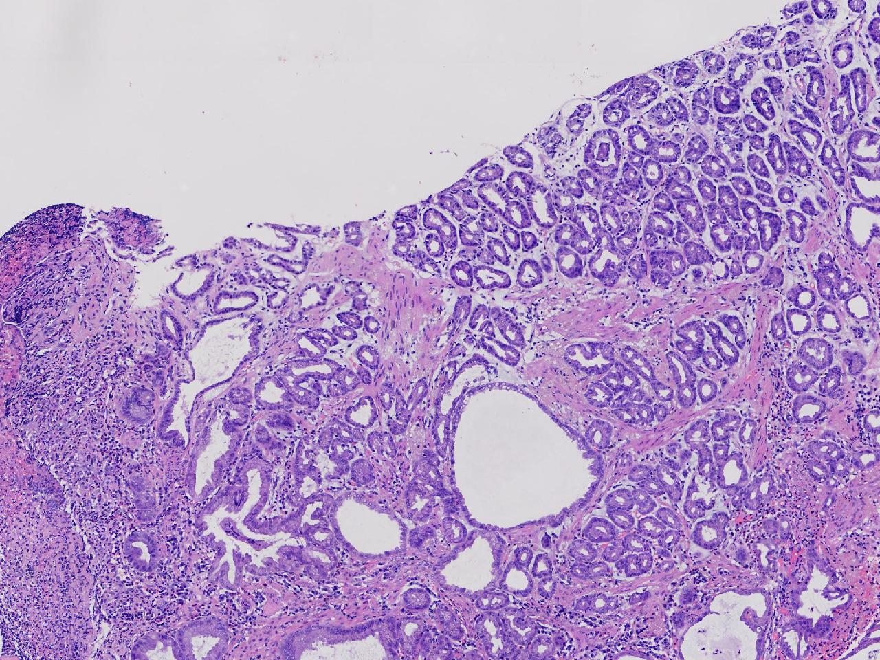 深在性囊性胃炎,少量溃疡组织