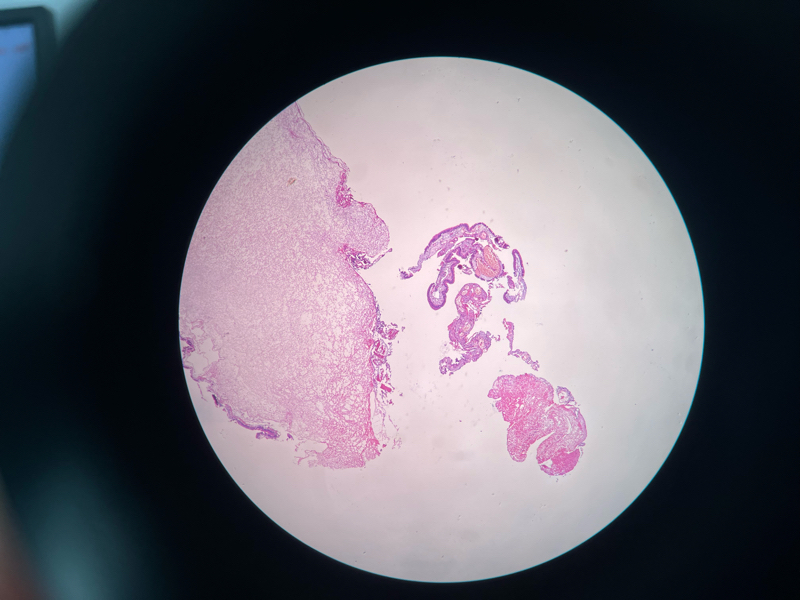 灰红组织一堆,约3.6✖️4.2✖️0.7cm