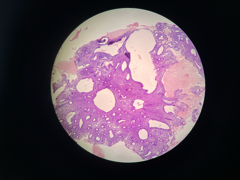不规则出血20天,乏力心慌4天,HB45g/L,子宫体增大,肌瘤约3.3✖️1.4cm,宫腔下段不均质回声约3.6✖️1.8cm,可见血流信号
