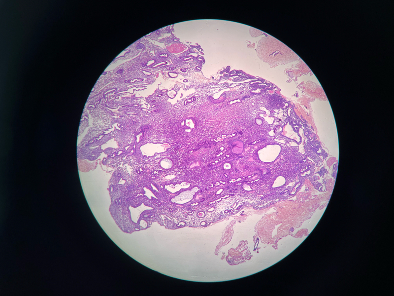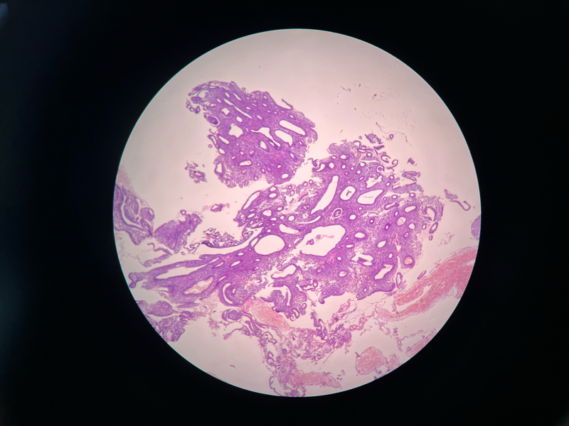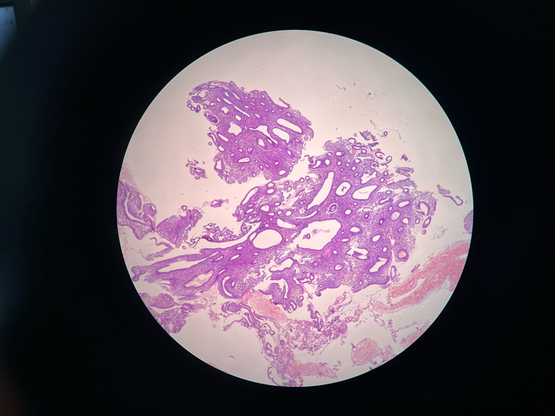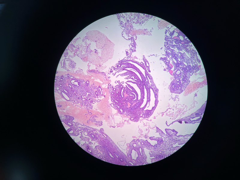 灰白灰红碎组织一堆,约3.2✖️3✖️0.4cm
