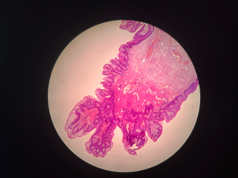灰红组织一个,约1✖️0.5✖️0.4cm,基底宽