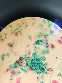 上皮细胞没有发现太大的问题,镜下再找找看其他的区域有没有念珠菌或滴虫。