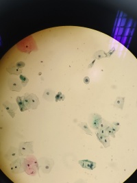 半年前血尿,服用抗生素2个月,后一直尿潜血阳性,右乳癌术后10余年,B超:双肾、输尿管,膀胱未见异常。老师们,有些核深染细胞,核异质细胞,轻度?