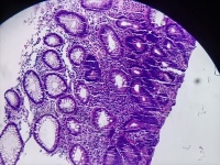 距肛门60cm处可见一枚大小0.4*0.4cm息肉样隆起