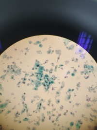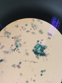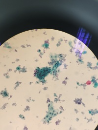 右下腹坠胀,宫颈多发囊肿。老师们,背景脏,有些核大细胞,ASC-US?
