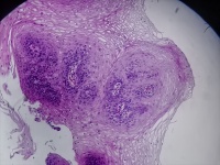 食管:距门齿约28cm见粘膜白色隆起,表面颗粒状