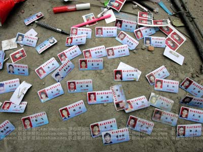 四川都江堰的一所学校因地震倒塌后,留下来的只有满地的学生证。